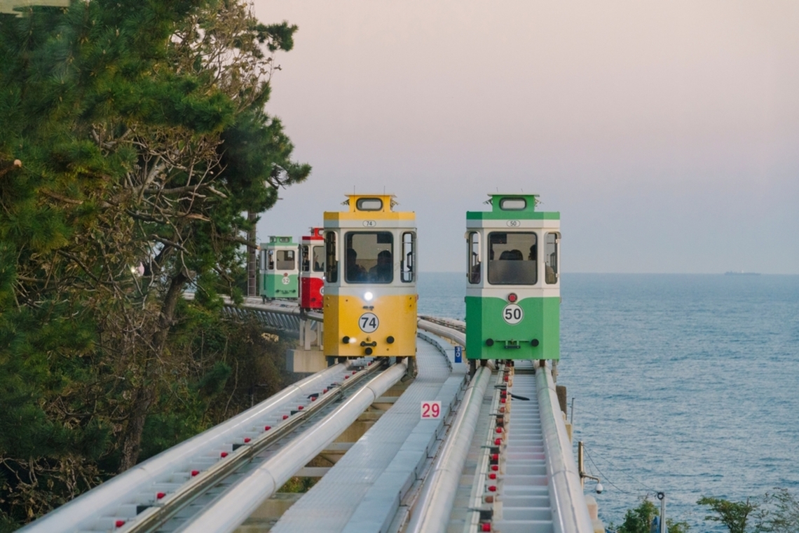 1. 松島海上纜車(來回):行駛區間為海水浴場東側的松林公園到西側的岩南公園,可將釜山松島一帶的美麗風光盡收眼底。