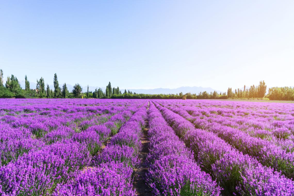 期間限定,每年6月到7月中,伊犁河谷地帶大片的薰衣草花田開出一片紫色的海洋,每當花開風起,一整片花田宛如深紫色的海洋上下起伏。迷人香氣也浸逸於你我之間,為這場季節美景拉開序幕。