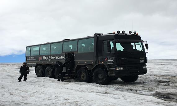 為了前往冰洞,我們乘坐一輛經過特殊改裝的巨大卡車。導遊將帶您踏上一段奇妙的旅程,在冰川深處,您可以看到令人驚嘆的冰洞。冰川不斷在移動,在這裡我們可以親眼目睹這種移動。