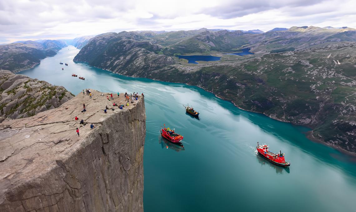 聖壇岩挪威鬼斧神工的峽灣景觀和地形總是令人讚嘆,其中有被稱作挪威三大奇石的奇蹟石、巨人之舌以及聖壇岩,聖壇岩位於呂瑟峽灣,垂直於上604米,頂部為一塊平坦的25平方公尺的平台,有如一塊佈道台,因此也稱作佈道台或講壇岩,在此眺望峽灣,景色開闊壯麗。